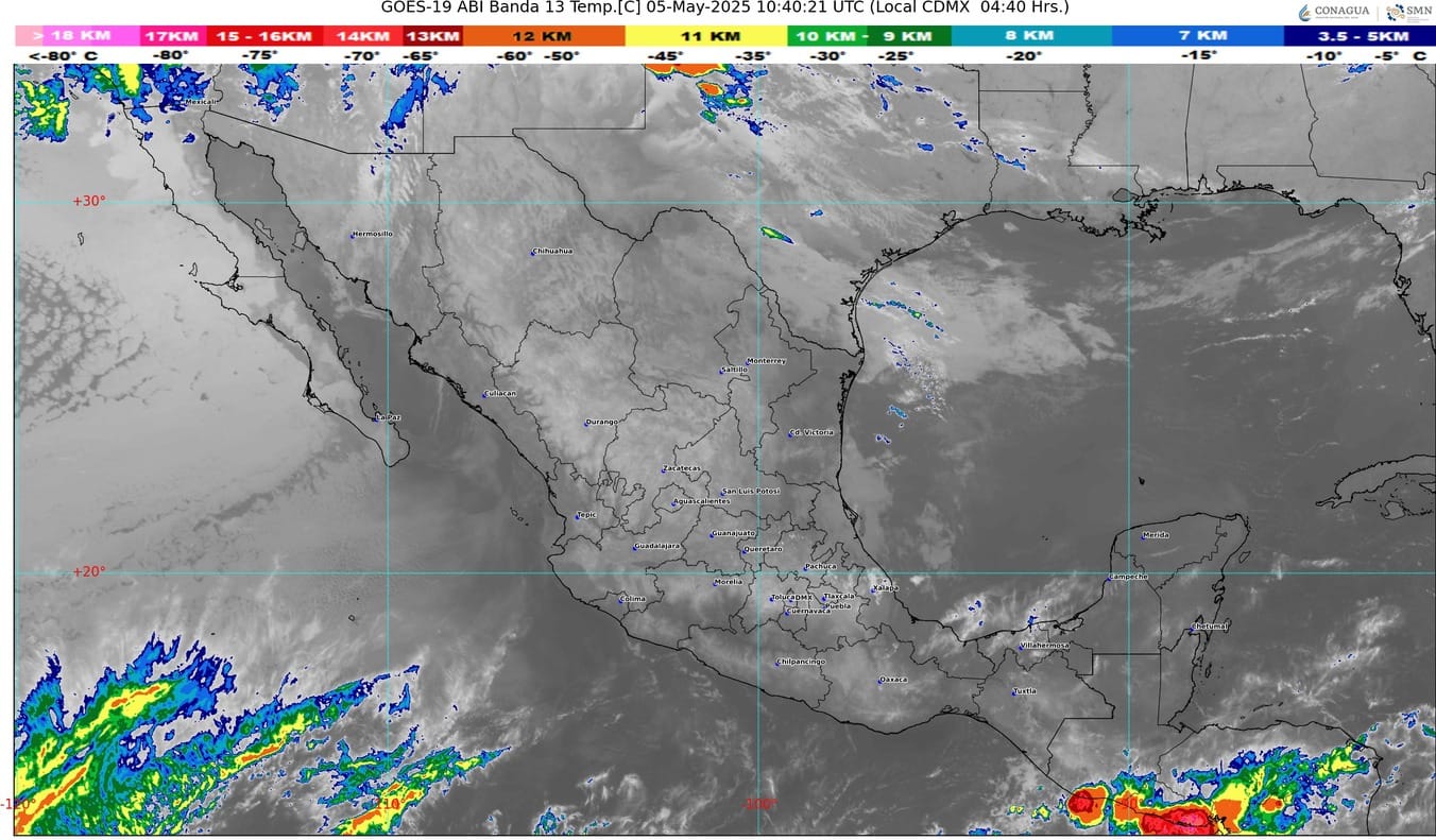Por otro lado, canales de baja presión se extenderán sobre el centro, oriente y sureste de la República Mexicana, aunados a inestabilidad atmosférica e ingreso de humedad del océano Pacífico, golfo de México y mar Caribe, ocasionarán lluvias y chubascos con descargas eléctricas y posible caída de granizo en las regiones mencionadas, sur del país y la península de Yucatán; con lluvias puntuales fuertes en Puebla, Veracruz, Oaxaca y Chiapas.