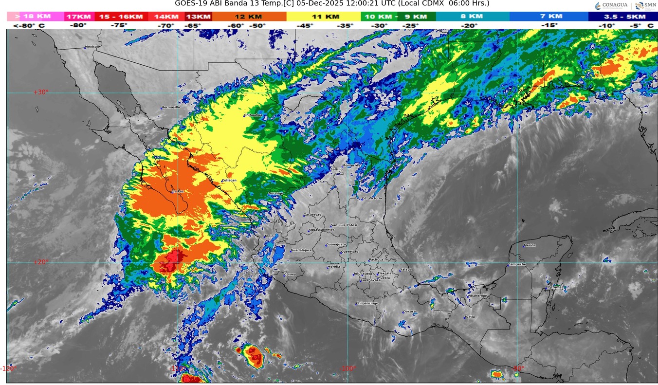 El abundante ingreso de humedad proveniente del océano Pacífico asociado con un río atmosférico y una vaguada en niveles medios y altos de la atmósfera sobre el noroeste de México, ocasionarán lluvias y chubascos en las regiones mencionadas, con lluvias puntuales fuertes en Baja California Sur, Sinaloa, Durango, Zacatecas, Nayarit y Jalisco; además de probable caída de nieve o aguanieve en sierras de Sonora, Sinaloa, Durango y Chihuahua.