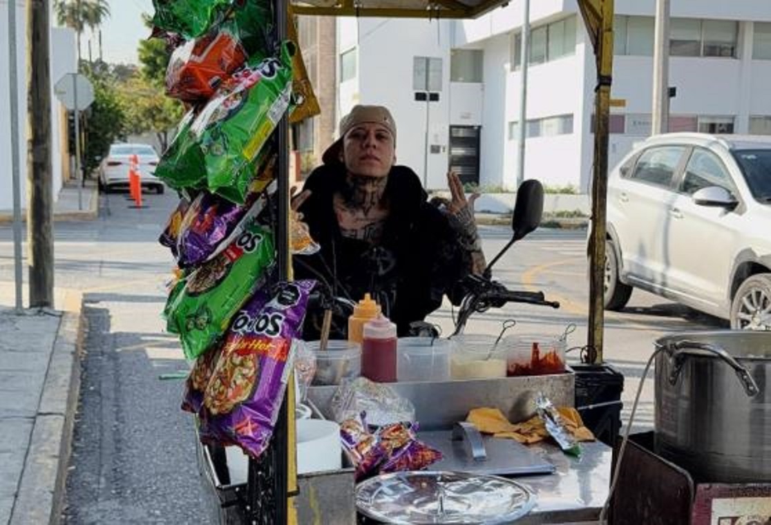 Lejos de los reflectores, el músico apareció recorriendo las calles de su barrio mientras empujaba un carrito de botanas, una escena que fue interpretada como una muestra de sencillez y cercanía con la gente.