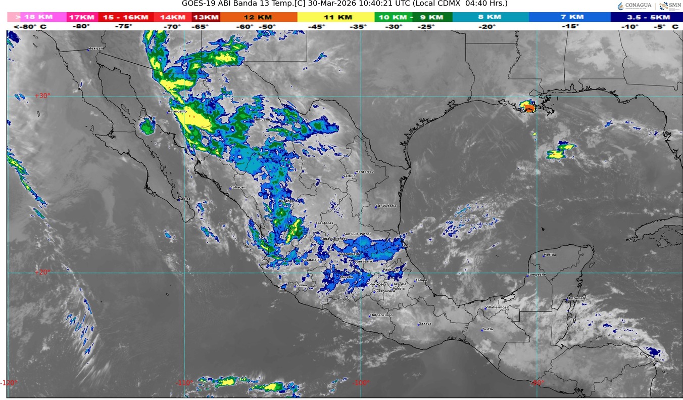 A su vez, durante la noche, hay posibilidad de caída de aguanieve en cimas montañosas con altitudes superiores a los 4,200 metros sobre el nivel del mar, del occidente, centro y oriente de México.